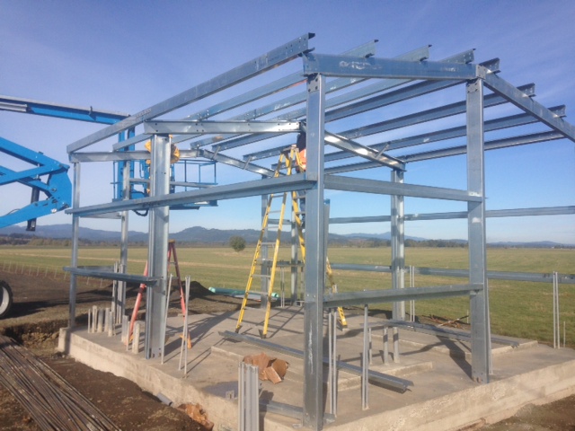 Sewer Improvements Project Update - October 16, 2014This week has seen some major progress on the new building as shown in the picture above. Staff will continue to work on the building this week. It is anticipated that the framing and sheeting of the building will be completed by early next week. After that, the crew will begin work for the anchors for the new air piping that will go around the lagoons. |